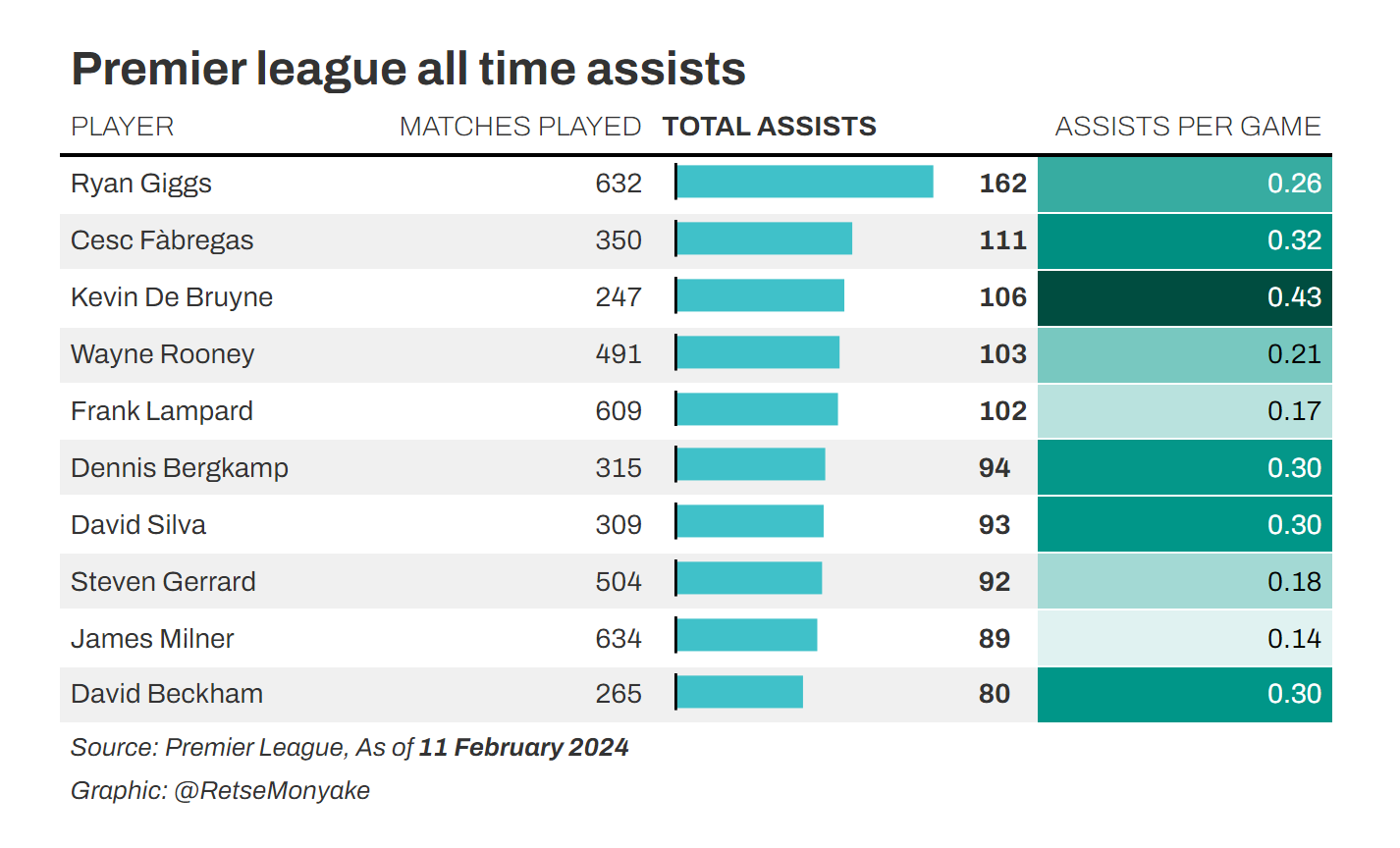 Premier League all time assists