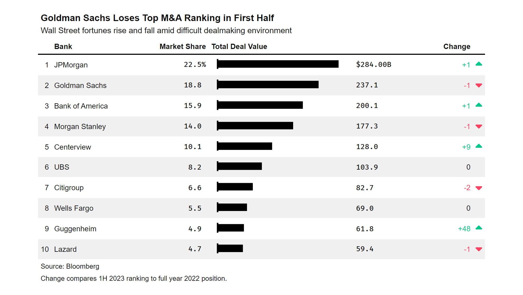 Goldman Sachs Loses Top M&A Ranking