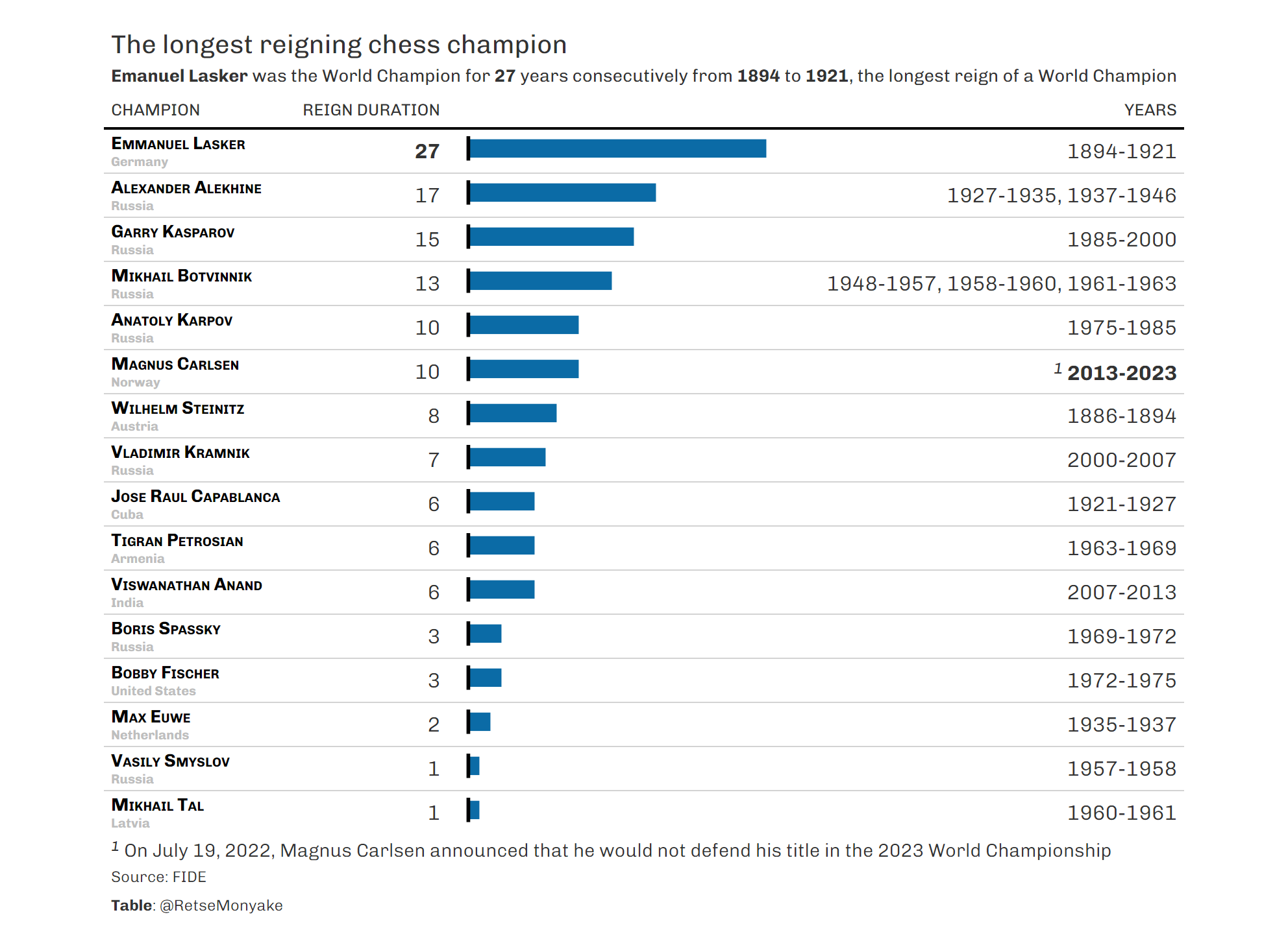 The longest reigning chess champion
