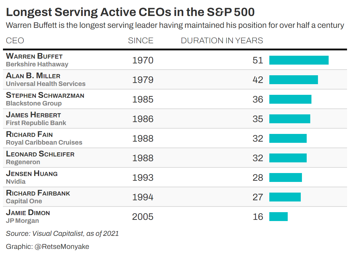 Longest Serving Active CEOs in the S&P 500