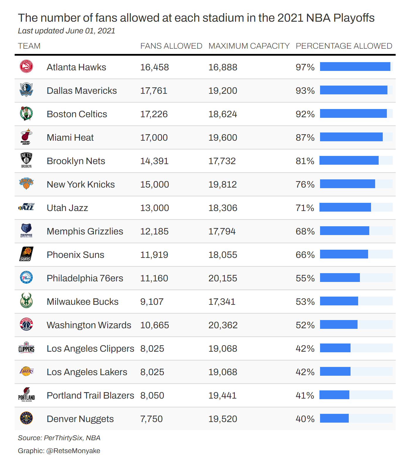 Where NBA teams stand on in-arena attendance