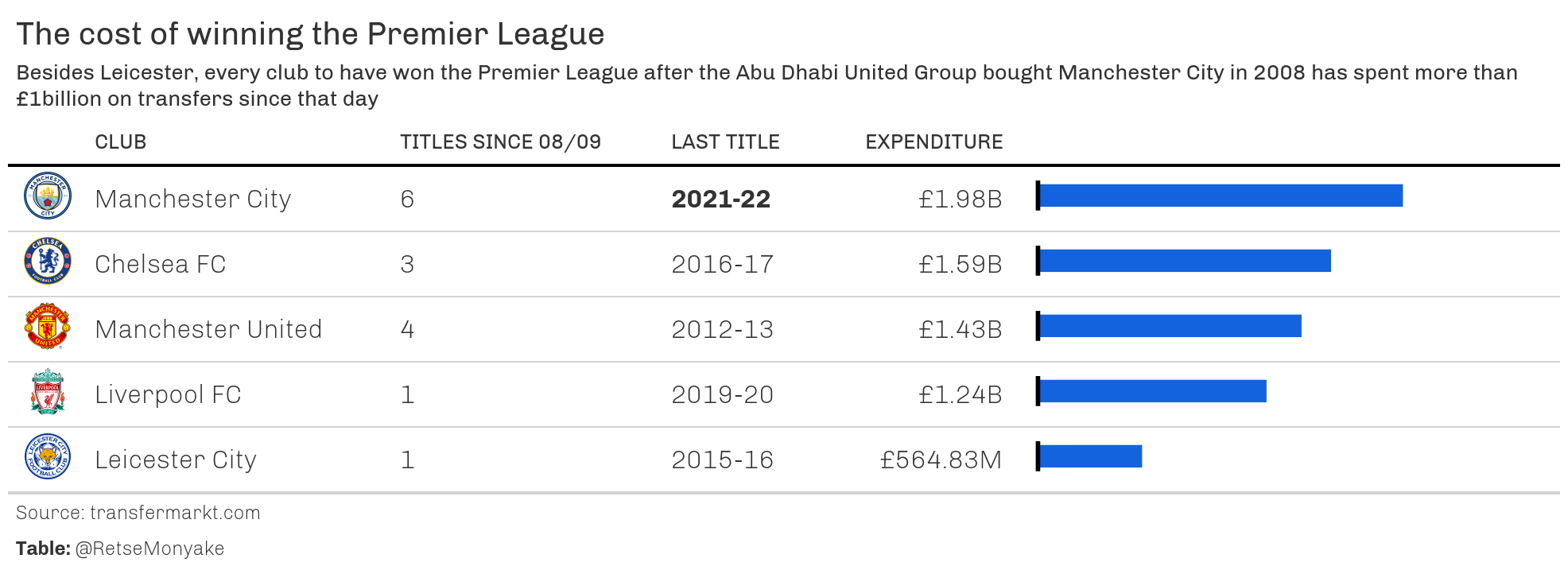 The cost of winning the Premier League